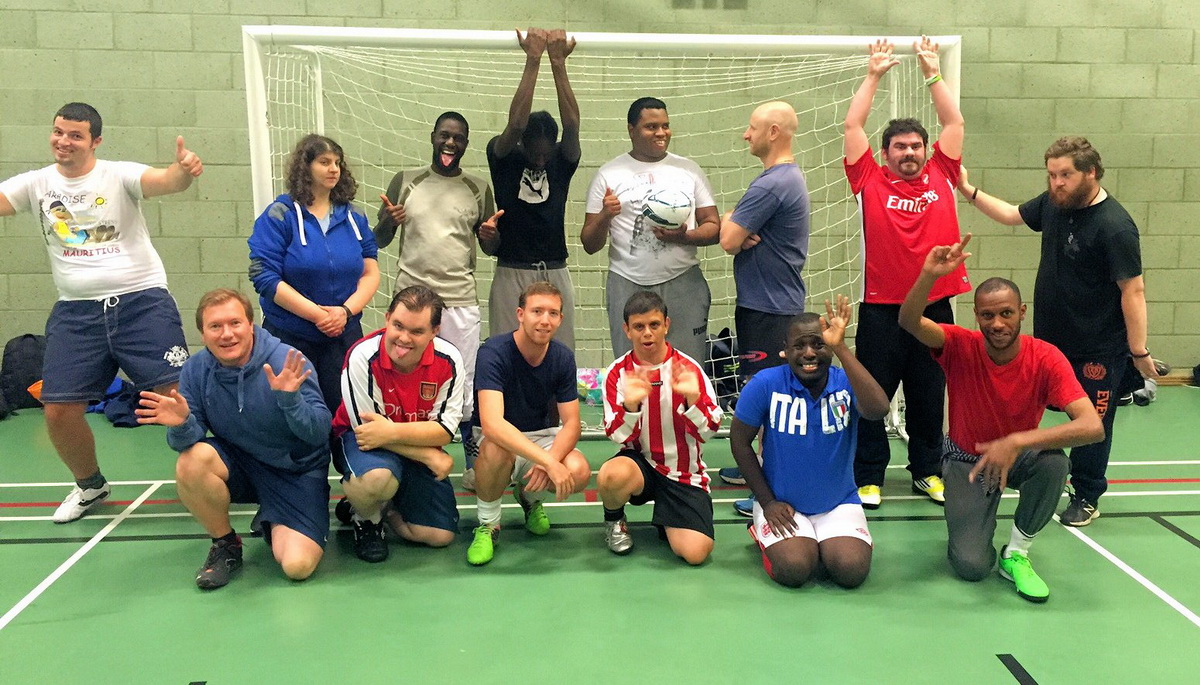 Our football team have been meeting for a few years now and have played in football tournaments. Each session takes place in an indoor sports hall and comprises of informal coaching with warm-up exercises, skills training and a match at the end!